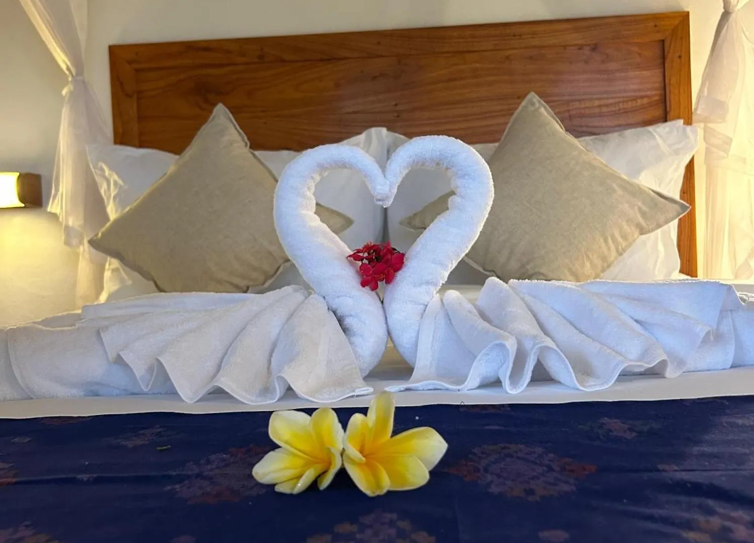 Les chambres sont meublées d'un balcon et un coin salon, avec un bureau. Des salles de bain avec un bidet, une douche ouverte et une toilette séparée, sont fournies dans les chambres.